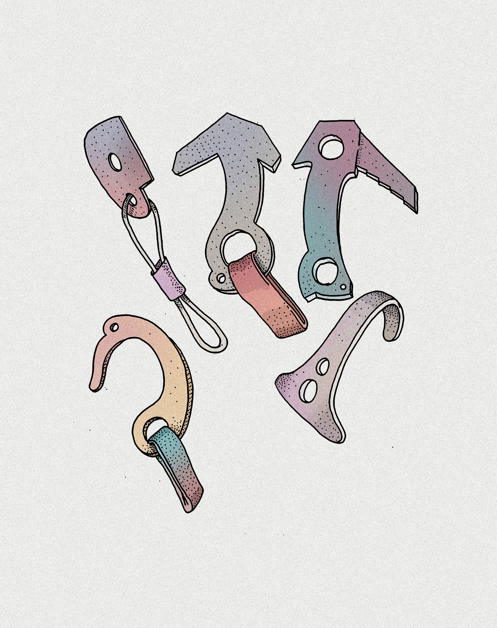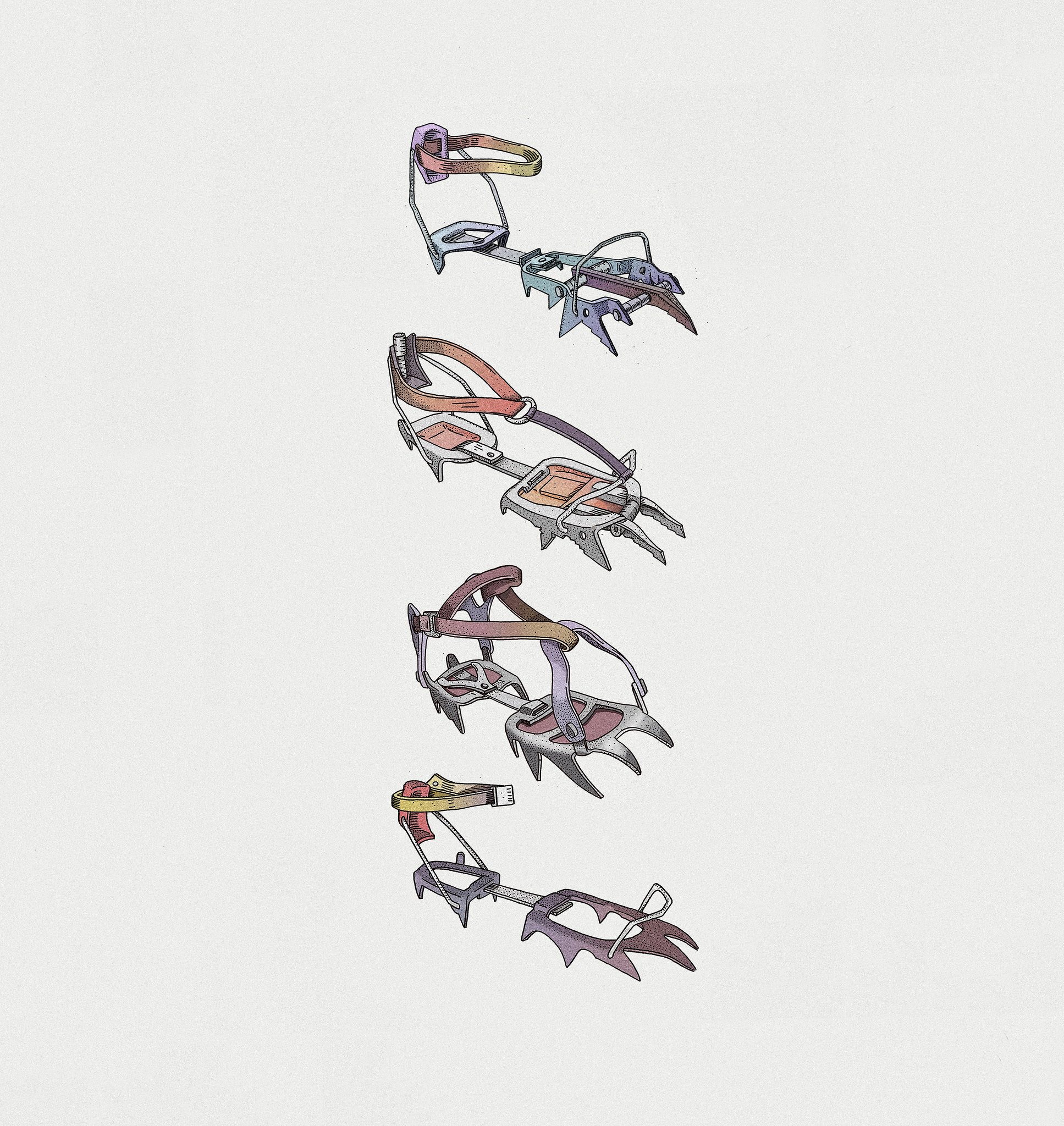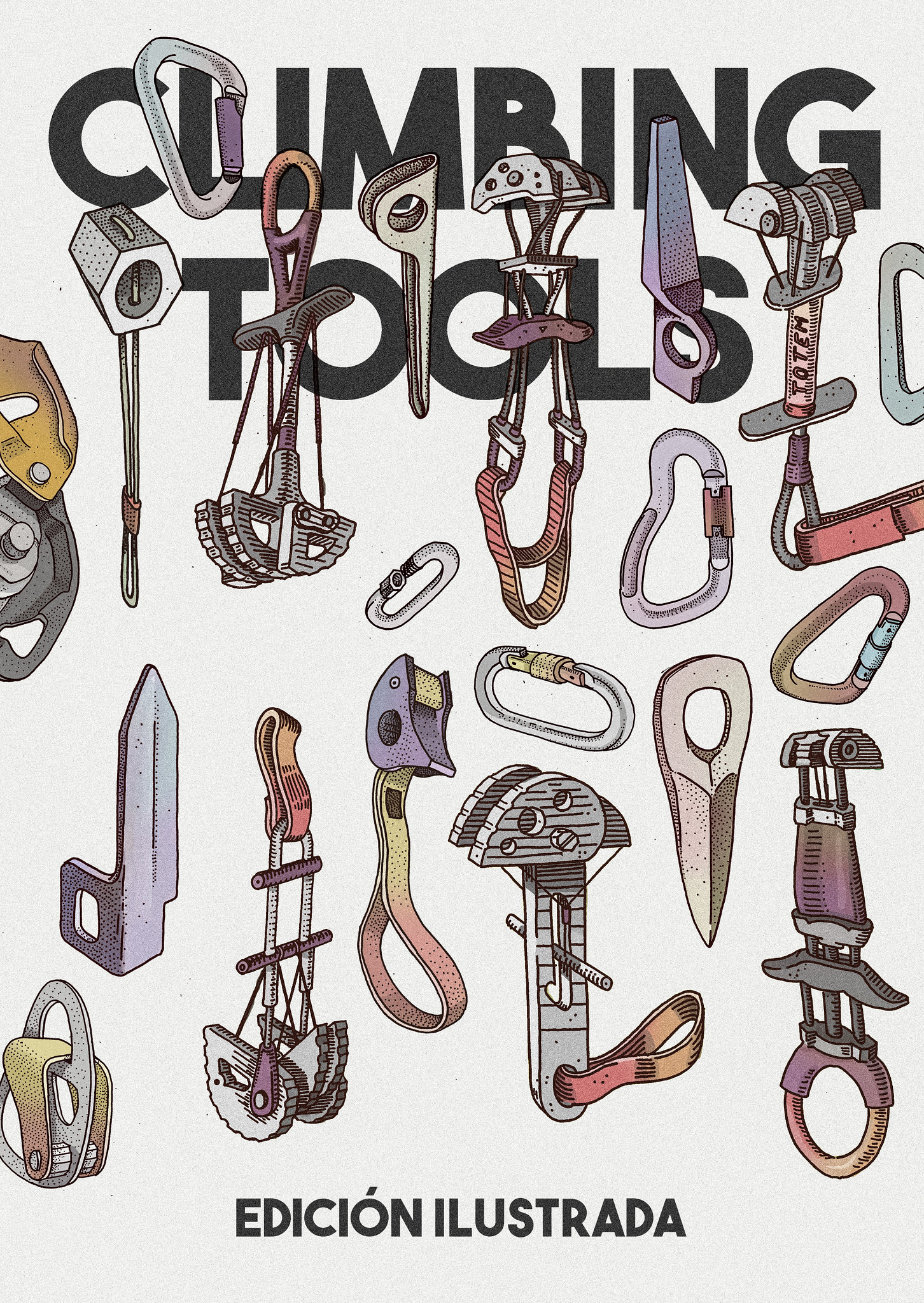 Climbing tools es un homenaje a estas mentes geniales que albergan una cierta porción de mérito en todas las cimas alcanzadas. Por otro lado, tiene una variante funcional más pragmática y palpable que pasa por desarrollar una gran tipología: abarcar todos los útiles y herramientas empleadas en el montañismo moderno y estructurar y catalogar todos estos ingeniosos avances, acompañados de un trabajo de ilustración encargado de dar forma a este proyecto.
