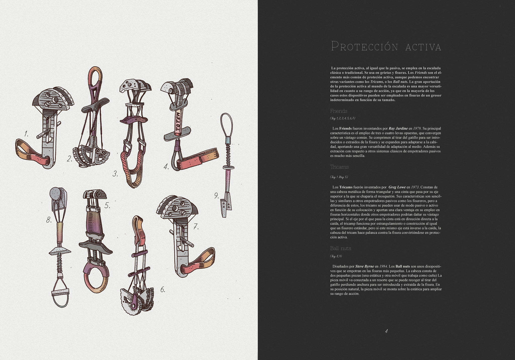 Creación del libro Climbing Tools, Ed.Desnivel, textos e ilustraciones de Eber Cameselle.